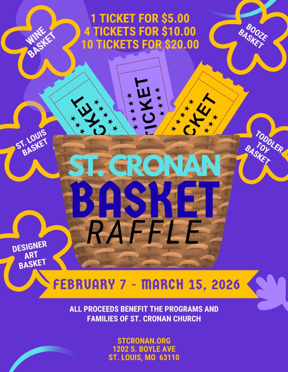 Tickets ar 1/$5, 4/$10 or 10/$20